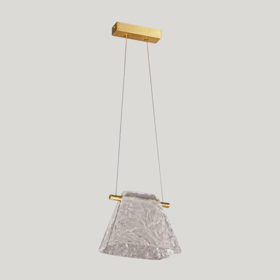 Blending geometric precision with vintage charm, this trapezoid-shaped pendant light brings a sophisticated touch to any room. Inspired by Art Deco aesthetics, the combination of sleek glass and warm brass creates a timeless piece that adds character and elegance to modern and classic interiors alike.